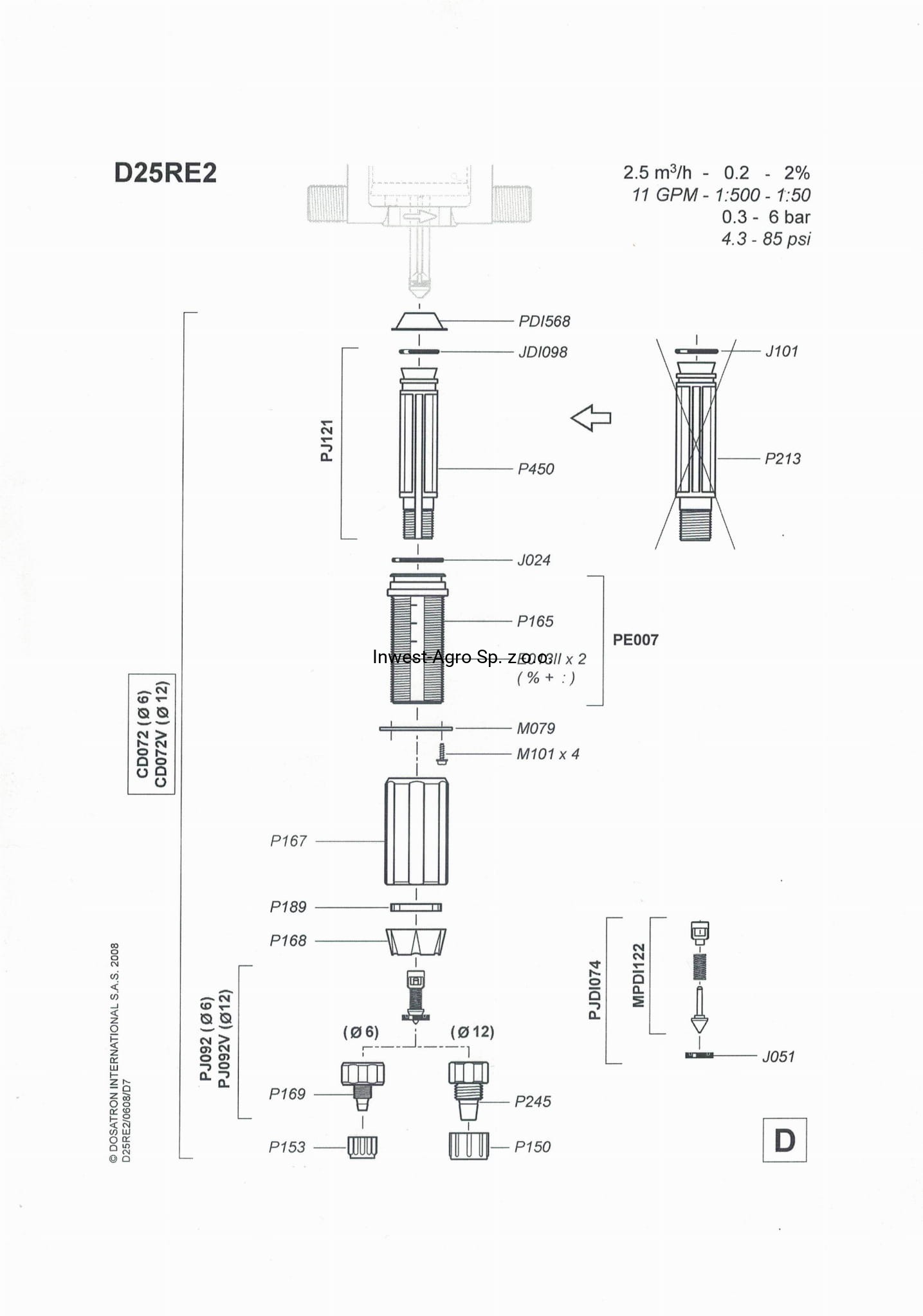 Wtryskiwana dawka preparatu jest zawsze proporcjonalna do ilości wody przepływającej przez DOSATRON, niezależnie od zmian natężenia przepływu lub ciśnienia.